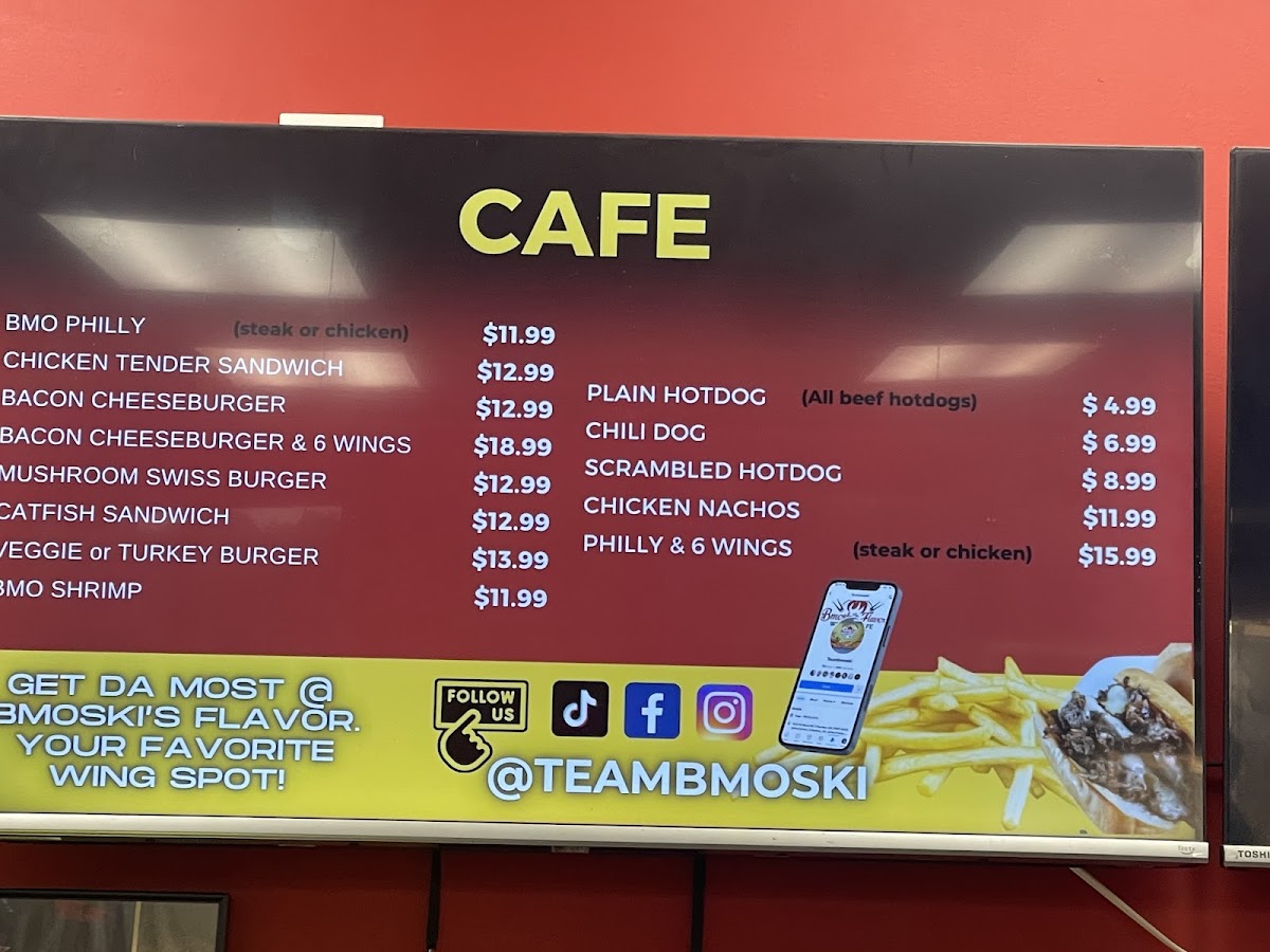 BMO Philly beverage. Choose from steak or chicken. Sides include fries, fried rice, okra, cauliflower, salad, or option for no side.